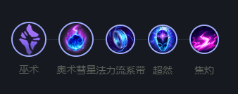 奥数彗星能提升莫甘娜的魔法伤害,超然在参与击杀后获得基础技能CD返还可以多次释放禁锢、免控技能提高团队上限。