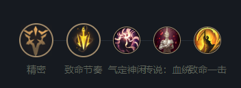 战争女神希维尔在w技能小重做后数值有点超模,希维尔属于平a输出型AD所以致命节奏提供的高攻速高射程是最合适的天赋,由于蓝耗较高点出气定神闲,带上血统满层后提供的6%生命偷取可以贪一点不要回复装备,砍倒则是ad收益最大的天赋。
