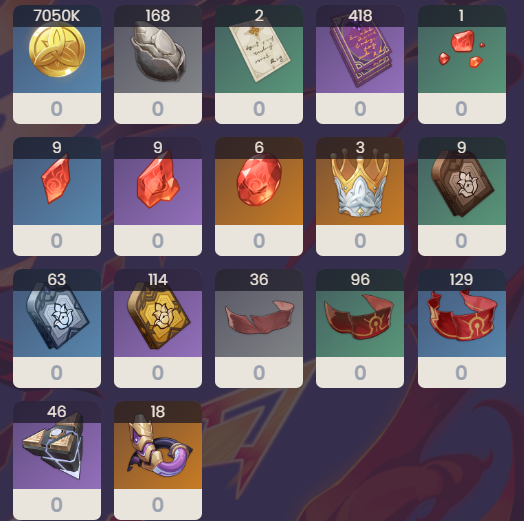 8级:笃行的哲学*6、红绸*6、傀儡的悬丝*1、260000摩拉