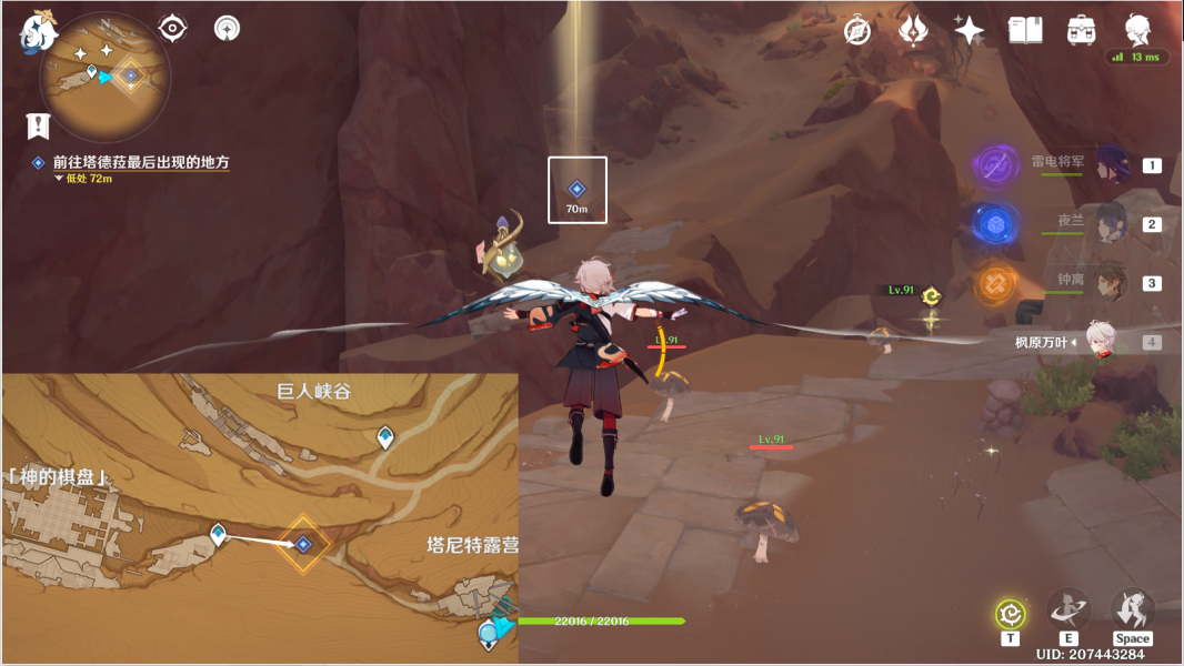 3、传送神的棋盘右边锚点,往地图的东方飞,前往塔德菈最后出现的地方。