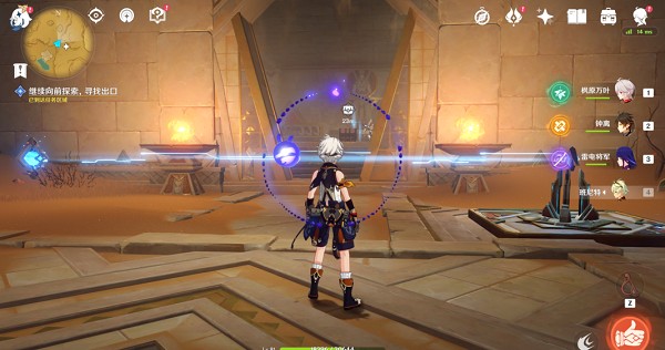 8.来到第一个入口,我们需要开启机关,但是这个机关是被沙子埋住了,我是利用万叶吹了一下就可以了