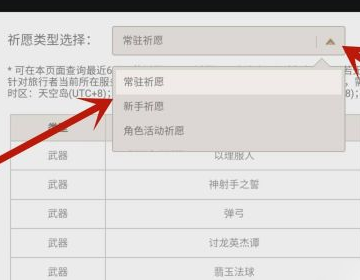 4、另还可以选择祈愿类型,查看其它祈愿池的抽卡统计日下图所示就完成了。