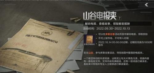 6、除了紧急任务之外,【多斯的电报夹】也可以通过完成局外【初探山谷】的任务来获取。
