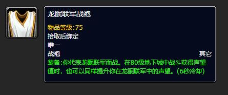 3、龙眠联军。此战袍可以在龙骨荒野的龙眠神殿购买,声望必须为友善。