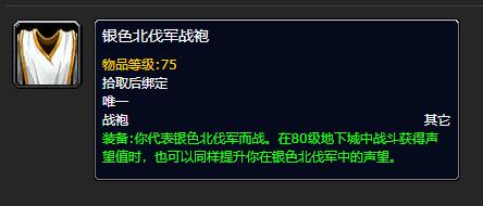 4、银色北伐军,此战袍可以在冰川冰冠的银色北伐军基地军需官购买,声望必须为友善。