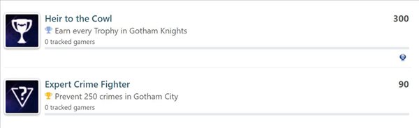 目前距离《哥谭骑士》发售日期越来越近,网络上游戏的各种相关情报也开始逐渐被公布出来。近日,《哥谭骑士》PlayStation版本的奖杯列表也已经在truetrophies网站上公布,总计49个奖杯可以获取,1白金,2金,7银,39铜。