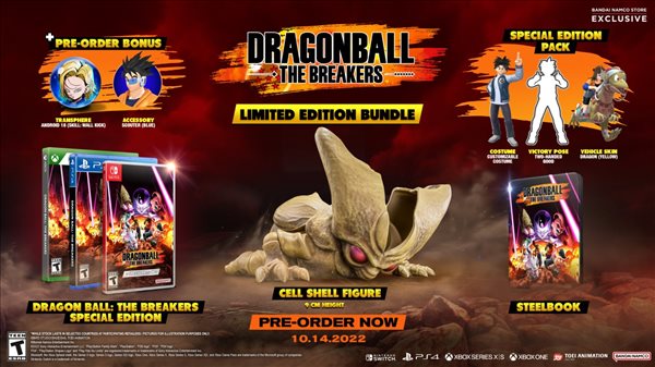 万代非对称动作游戏《七龙珠:破界斗士(Dragon Ball: The Breakers)》目前在Steam平台开启预购,预计10月14日发售。今日,官方公布了游戏的限定版情报,其中包括游戏本体、沙鲁初级形态模型以及游戏道具等。