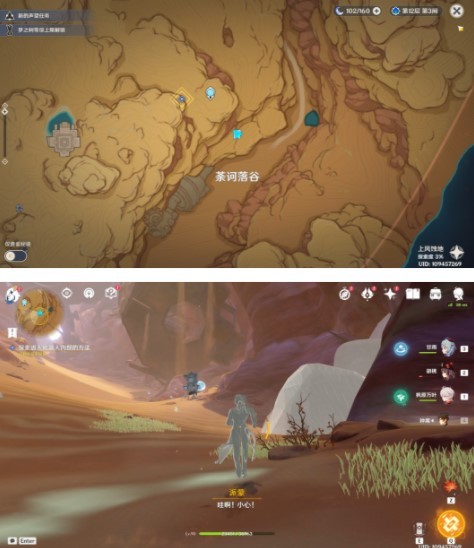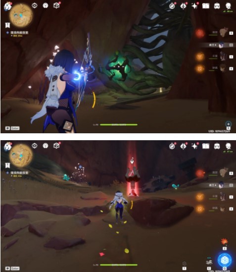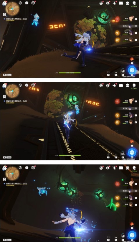 7.利用四叶印往上,打破第一组须陀流心,里面还有三个绿球,找不到可以用元素视野,能看到白色的物体。