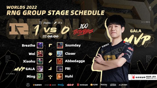 今日(10月11日),《英雄联盟》S12小组赛第四日,来自中国LPL赛区的RNG战队1:0战胜100T战队,小组赛取得三连胜。