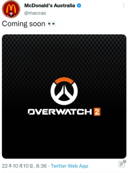麦当劳官推宣布联动《守望先锋:归来》,活动即将到来。