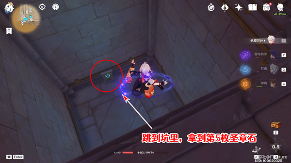 5、跳到坑下拿第5枚圣章石。