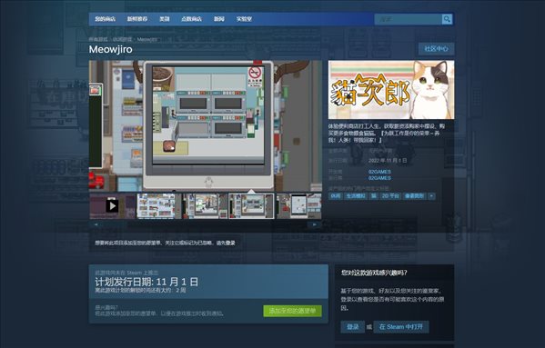《猫次郎(Meowjiro)》是由02GAMES制作发行的一款生活模拟游戏,在该作中玩家将体验便利商店打工人生,获取薪资添购家中摆设、购买更多食物喂养猫猫。游戏目前已上架Steam,预计11月1日发售,支持简体中文。