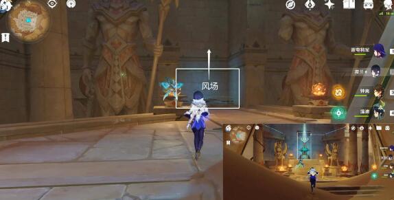 3、我们往地图东面走,前往圣显厅中间装置背后,进入风场。
