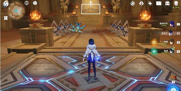 2、我们先传送如图所示锚点,往地图东南方向飞,用四叶印前往圣显厅门口,开启秘仪台座,开启圣显厅。