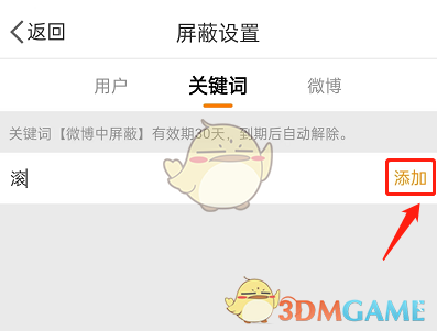 5、输入屏蔽词,点击添加。