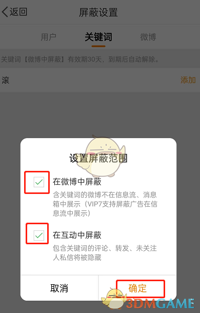 微博怎么设置私信屏蔽词?