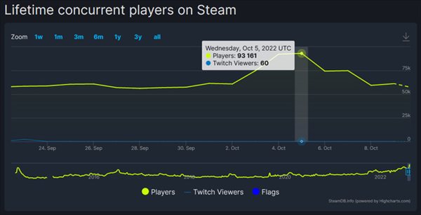 本作玩家同时在线人数至今为止都在60000人左右,为什么会突增1.5倍呢?本作是免费游戏也没有促销,最近也没有大型更新,具体原因不明。提到这件事的PC Gamer表示:“免费游玩的快乐和8年来的不断更新,这就是理由”。