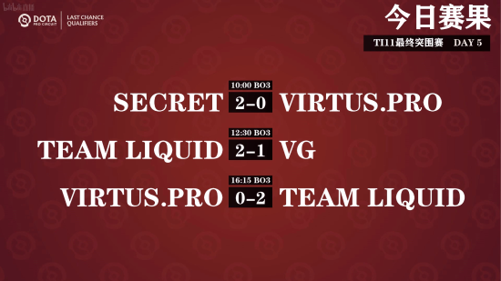 最终突围赛已经全部结束,Secret和Liquid 成为了最后两支晋级TI11主赛事的战队。