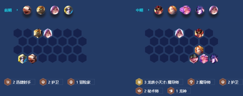 中期3-2正常拉6级,不需要D牌。中期体系牌来到之后可以直接上场去凑羁绊,比如洛和扎克来到就去替换掉场上的一星护卫。有诺姆希的话直接上场打工,携带萨勒芬妮神装,注意此时哪怕萨勒芬妮来了,在没有两星前,不要去下掉诺姆希,继续用它打工到7级,成型后再将装备给萨勒芬妮。此时萨勒芬妮有2神装后,选秀拿装备就不要再为萨勒芬妮准备了,而是要优先拿男枪的输出装,否则7级成型阵容会缺乏伤害,难以锁血。