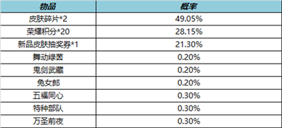 万圣前夜、荣耀积分*20、新品皮肤抽奖券*1、皮肤碎片*2。