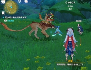 传送到维摩庄右上角传送点,前往目标位置触发剧情。注意之后要限时寻找目标并战斗,此处可以试用妮露,需要提前调整好阵容。