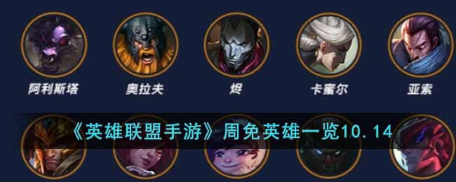 英雄联盟手游10月14日-10月21日周免英雄有哪些?英雄联盟手游新的一周限免英雄更新了,本次限免的时间是10月21日-10月27日,很多小伙伴已经迫不及待想知道英雄联盟手游本周的周免英雄都有哪些了,小编给大家带来的英雄联盟手游本周周免英雄一览,一起来看看吧。