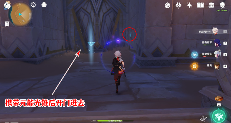 15、来到上层后,拿元能光锥,通过墙上的开关开门进去。