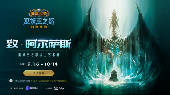 本次艺术展是《魔兽世界》采用线上的方式同时向国内公众展出多幅官方美术作品的首度尝试,由中国领先的当代艺术机构 UCCA Edge 担任艺术顾问。网易瑶台为此次展览提供了全方位的线上技术支持,通过打造沉浸式虚拟展厅的形式,向观众展示怀旧服 「巫妖王之怒」200 余幅官方设计师艺术作品,带领观众零距离感受巫妖王之怒的艺术魅力,在鉴赏诺森德精美艺术原画的同时,领略阿尔萨斯的重大故事经历。依托于网易瑶台的强大技术支持,用户不仅可以自由在虚拟空间内观展,还可以参与互动赢取观展礼遇,享受别具一格的视听、交互双重极致体验。