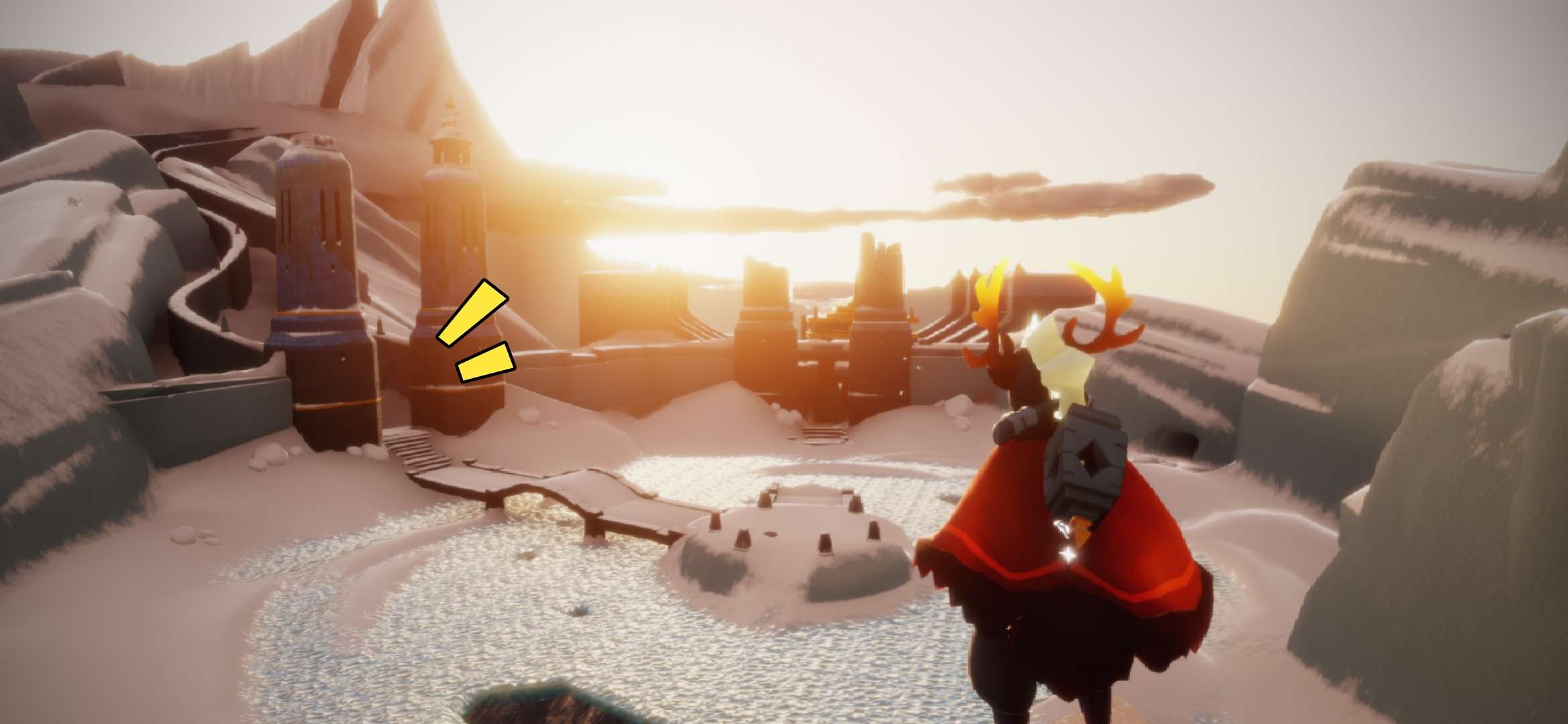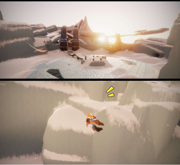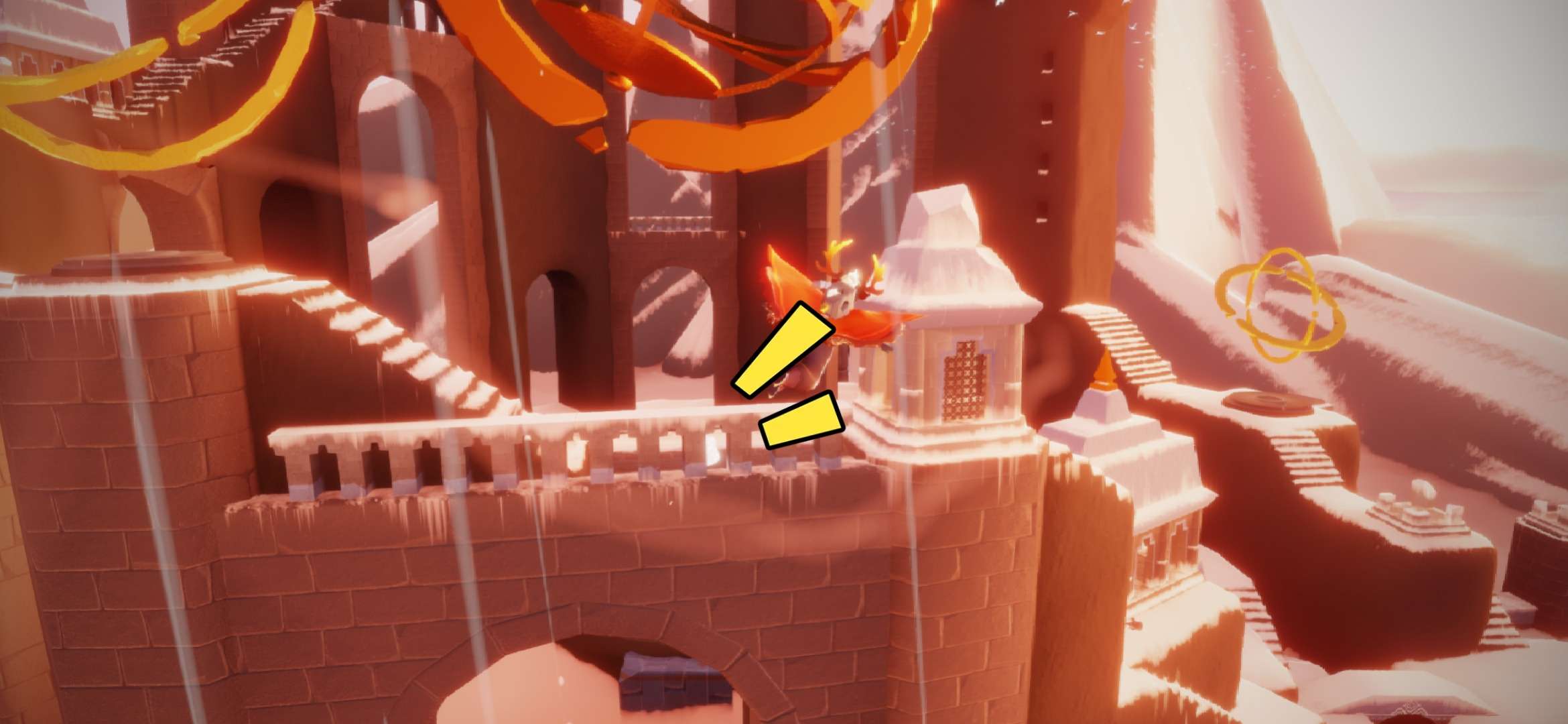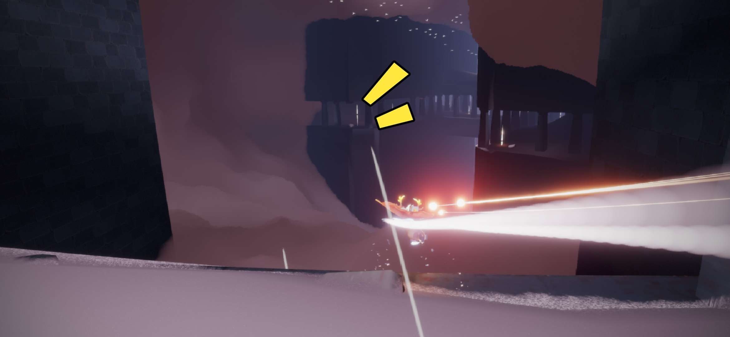 1、从遇境进入霞谷溜冰场,往右边的平台飞;