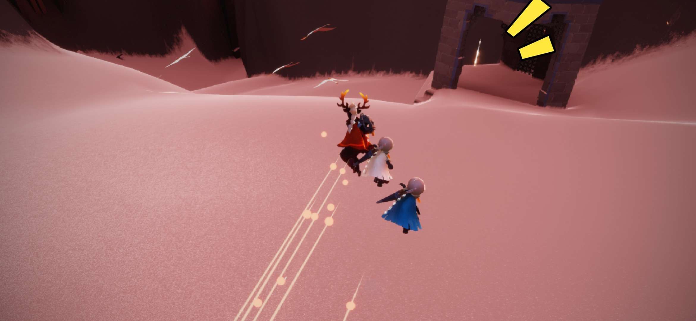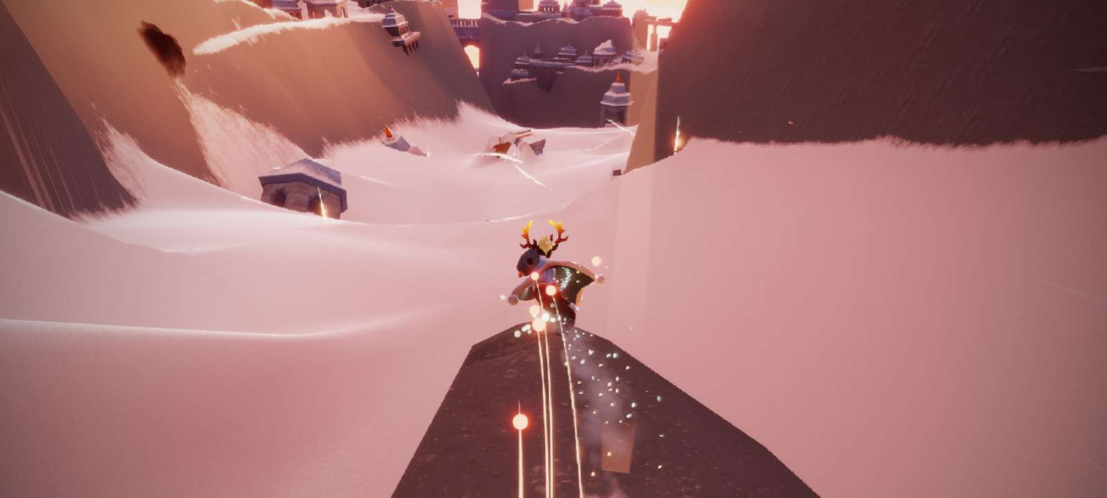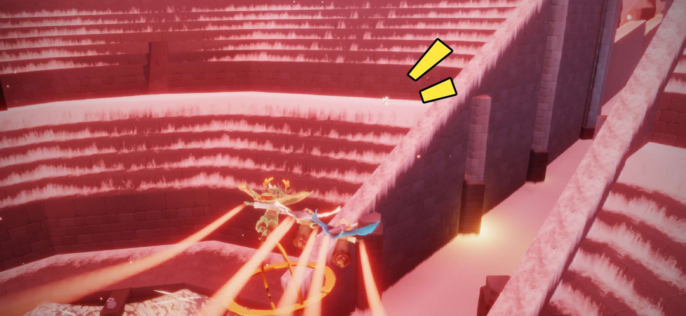 1、从遇境进入霞谷溜冰场,往右边的平台飞;