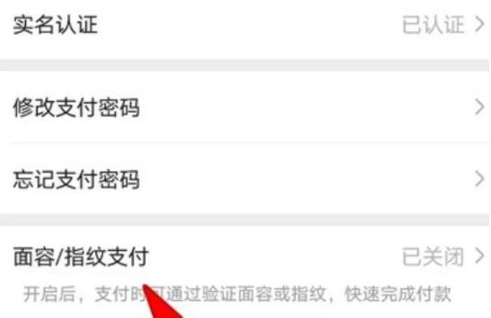 4、进入之后,找到并点击面容/指纹支付选项。