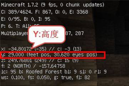 3、Y:海拔高度,脚踏地表一般60以上,向下逐步减少,在挖矿是查看的深度即y值,所说的矿石所在层的高度就是该数值。