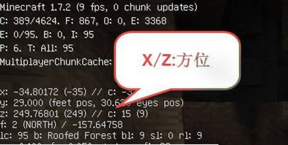 2、X: 玩家的位置相对0,0位点偏东的距离(负值为偏西),Z:玩家的位置相对0,0位点偏南的距离(负值为偏北),在实际使用中只需尝试走动使之趋向于目标点坐标即可,结合F数据一起看。