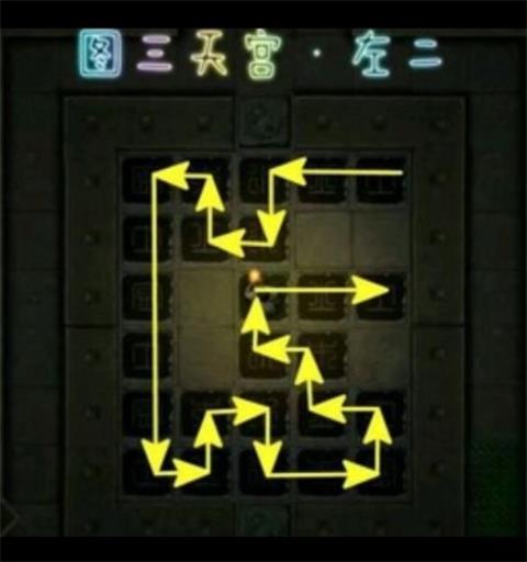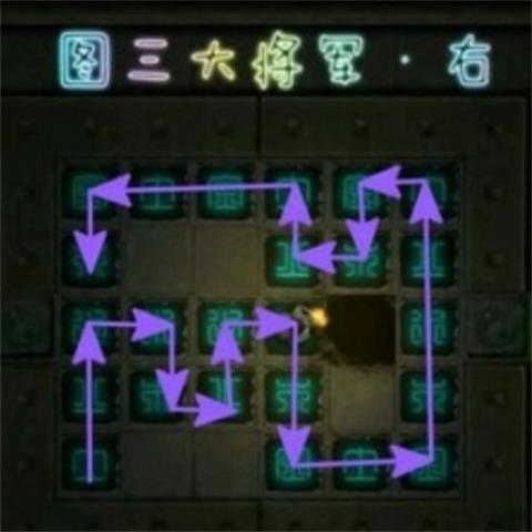 4.石像房间:包括两个将军石像和四个圣兽石像,都是用来开路的,优先解决这里面的踩石板机关。有石板的区域就是无暗雷区,可以放心踩。但是里头的小房间和塌陷神秘区域还是有暗雷的,要注意。石板还是老规矩踩亮不走回头路,在这附上图给大家参考。PS:不是一定要从入口开始踩和结束,可以从任意的地方开始踩,往回走一步就可以全盘重置,所以完全可以从单独的一个分支从头踩起。