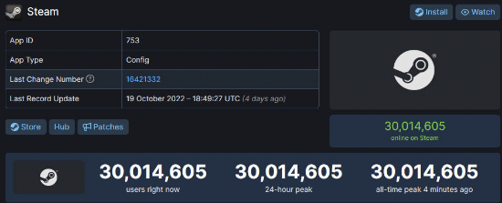 据SteamDB统计数据,Steam平台在线玩家数已突破3000万大关,创造了新的历史记录。