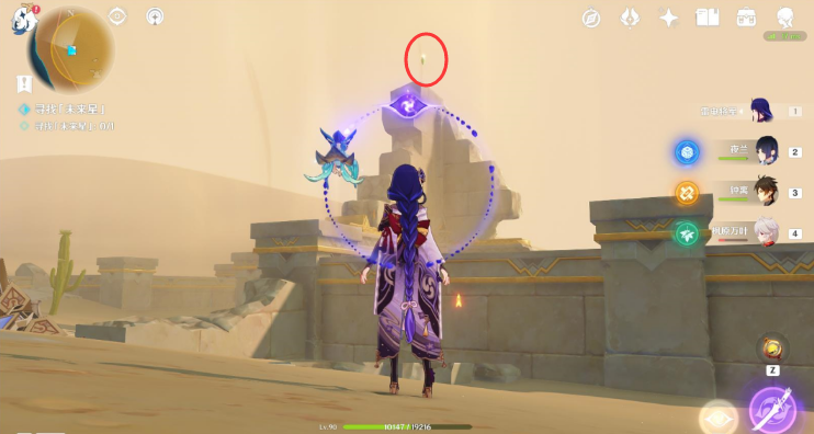 5、打完怪后会自动调整视角,未来星就在红圈处。