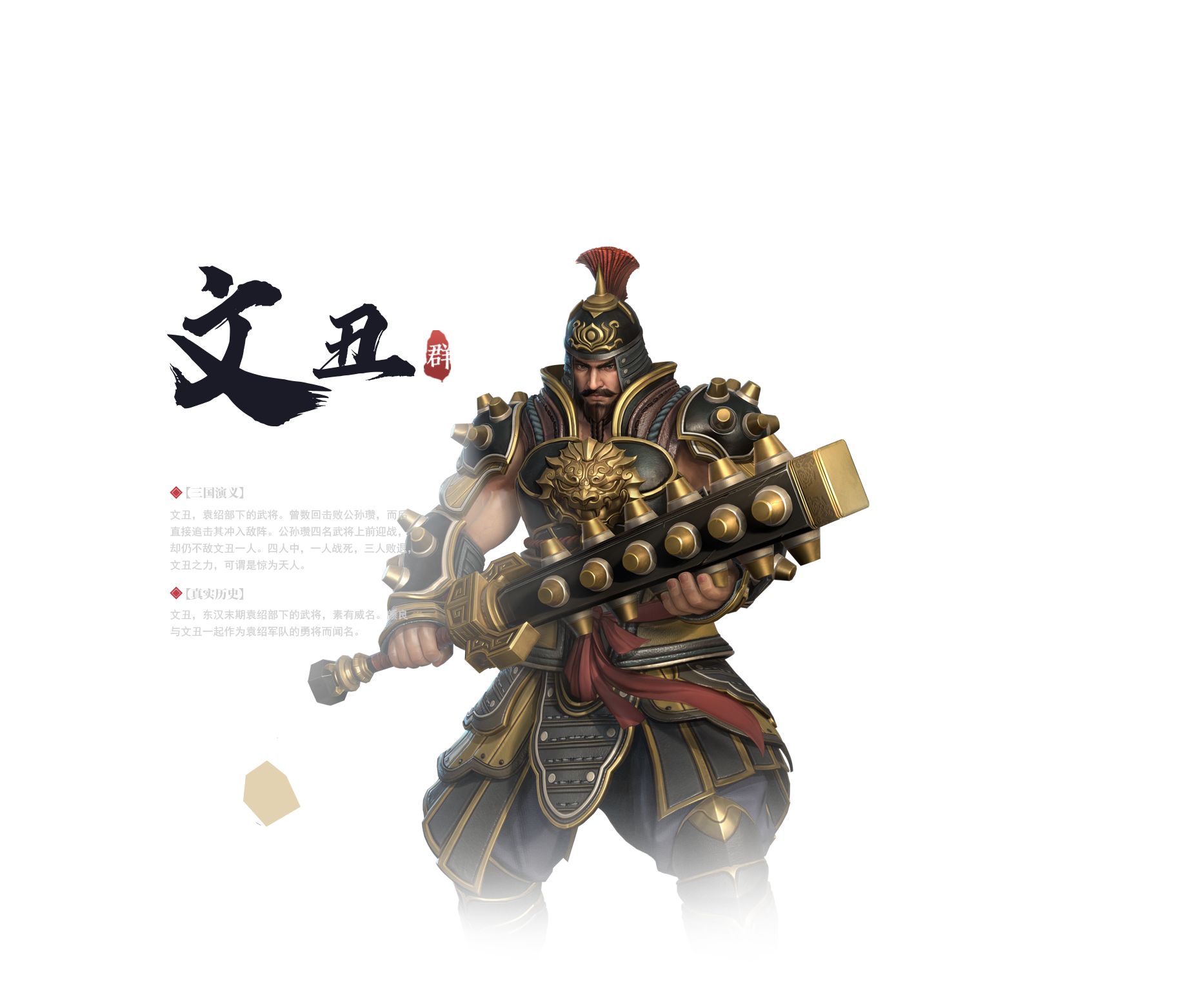 史:文丑,东汉末期袁绍部下的武将,素有威名。颜良与文丑一起作为袁绍军队的勇将而闻名。
