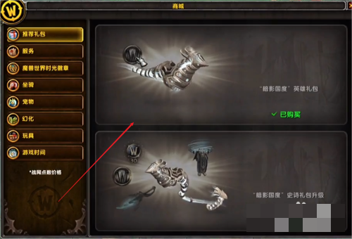 1、首先需要打开商城获得暗影国度的礼包,如下图所示