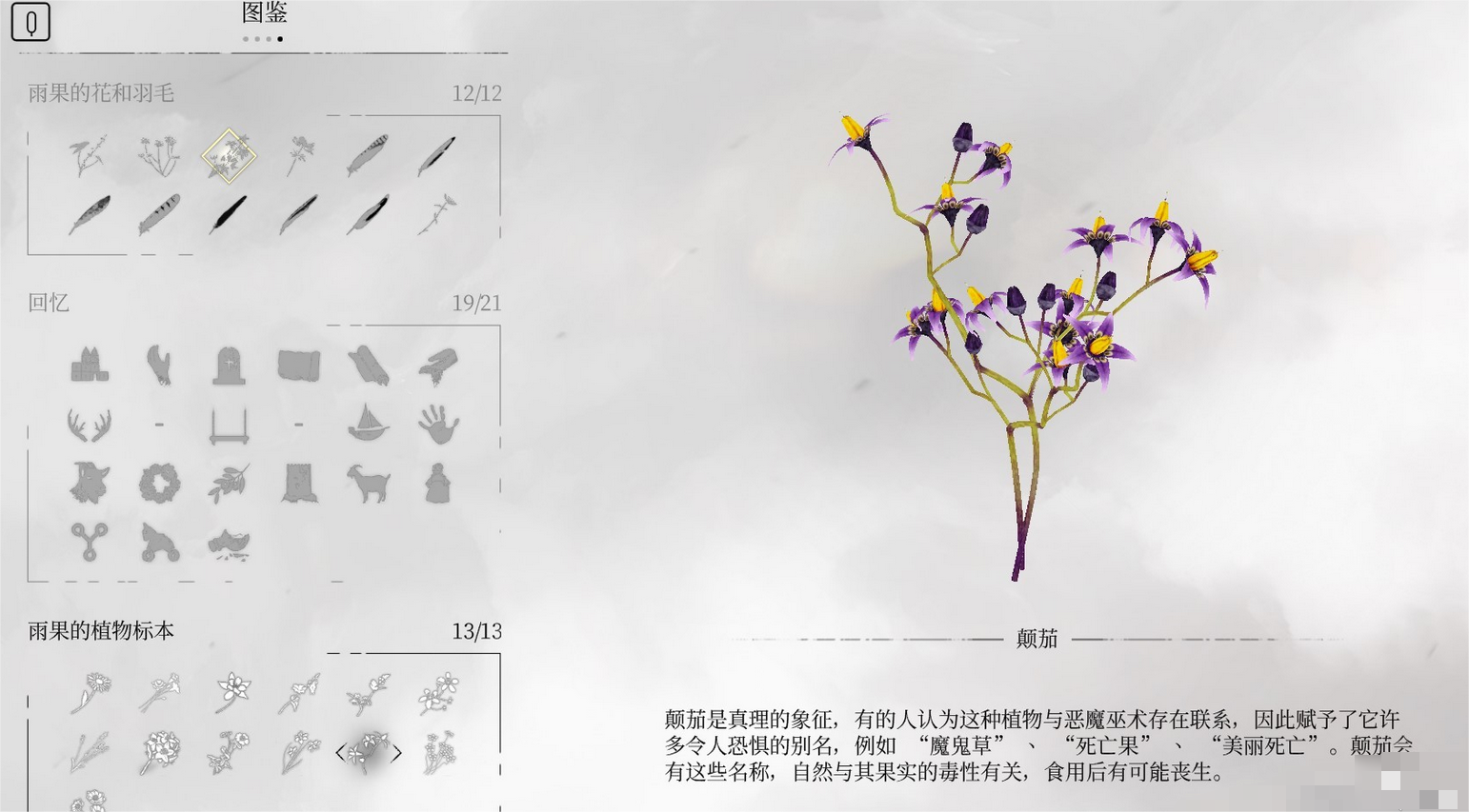 3、阿米西亚专属外观:打开升级菜单,找到图鉴,图鉴最下方就是阿米西亚专属外观(雨果的植物标本)。共13朵花,不用自己收集,游戏开始就能给阿米西亚戴上。