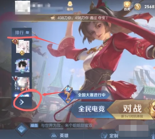 1、首先,进入游戏,点击左侧好友栏上方的排行,点击点击下方的展开