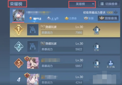aov英雄战力排行怎么看