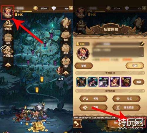1、首先进入剑与远征手游,进入游戏后点击游戏界面左上角位置的头像。