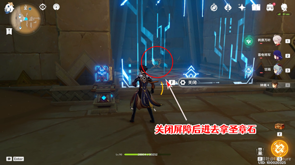 2、需要关闭秘仪台座,屏障就会消失,就可以找到第二块圣章石。