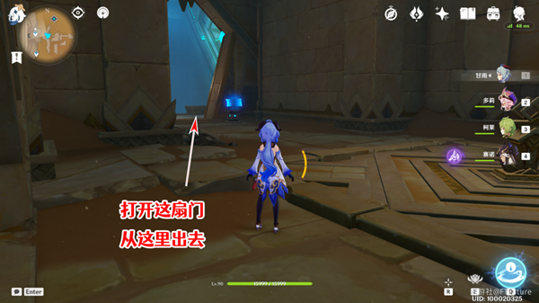 2、跑到陵墓底部,通过移动恒光元件和水元素方碑对齐,使水位下降。