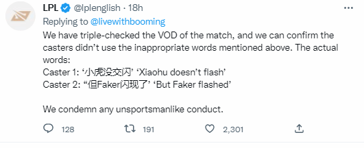 针对此情况,LPL官推做出了以下澄清:
