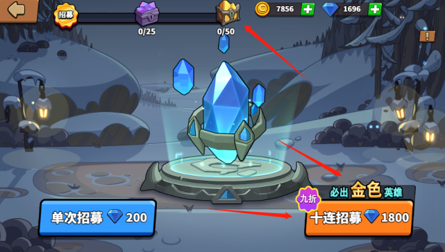 在这里我们有俩种方法可以获得熊猫萌萌,第一种就是花费1800钻石十连抽,但是这个就需要我们凭借运气去抽萌萌啦。第二种方法就是我们累积50次招募即可开启一次金色英雄自选宝箱。这里比较推荐钻石大佬玩家。