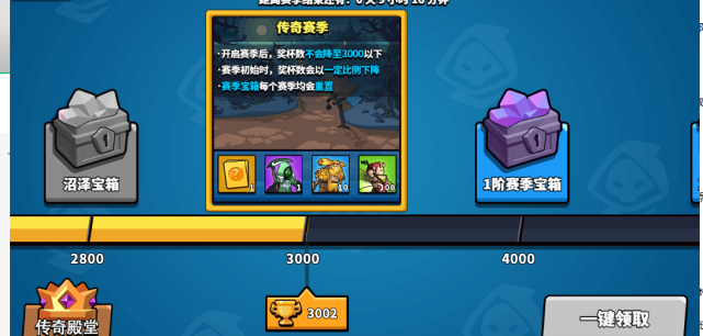 首充小楼在这里我门就不多说了,传奇实际当我们的奖杯数量达到3000时,我们可以随机开出金色英雄,当然开出来的英雄都是随机的。