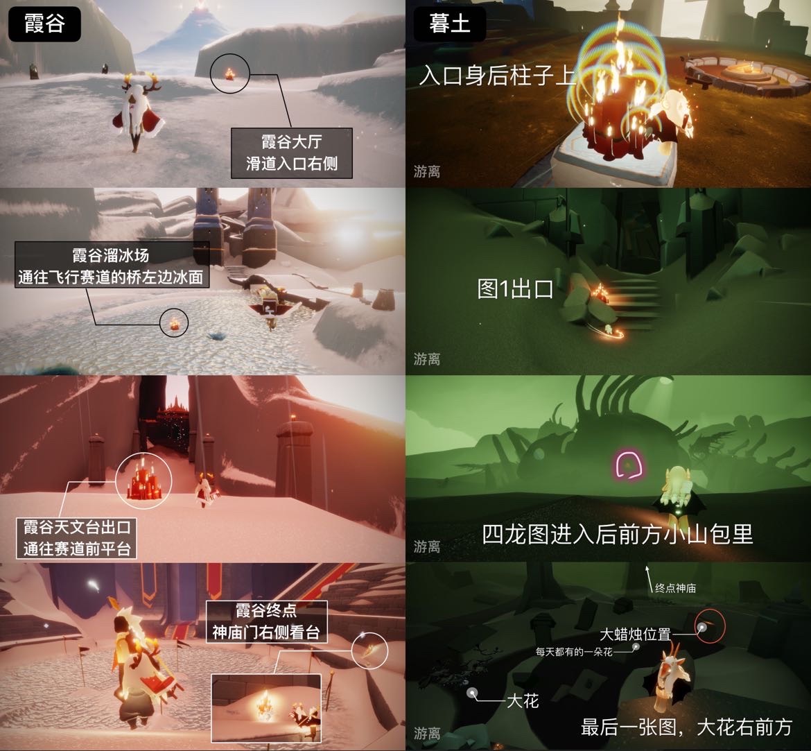 今日大蜡烛位于霞谷、暮土,还没有找到的小伙伴快去游戏中看看吧~