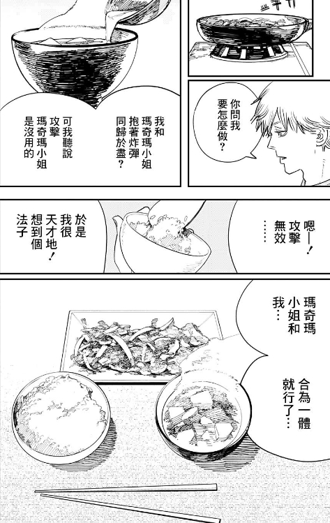 玛奇玛在漫画结尾被男主电次做成了生姜炒肉,还说了名台词“玛奇玛小姐原来是这个味道啊…”(据说漫画完结后导致日本便利店的生姜炒肉都被抢光)。