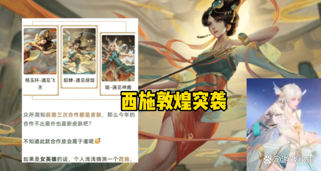 西施敦煌突袭;眼看今年的敦煌系列新皮肤也已经到了上线的时间点,目前据网络上的种种爆料迹象来看,今年的敦煌系列新皮肤概率应该是给到了西施,西施能够荣获敦煌系列新皮肤也是蛮不错的,毕竟敦煌系列获得英雄基本都是四美英雄,例如杨玉环和貂蝉的,瑶妹的另当别论。这样看来,西施荣获今年的敦煌新皮肤可能也是很高的,去年的貂蝉敦煌是在九月份上线的,甚至目前都已经有了西施敦煌的爆料展示,正因如此,西施敦煌也很快就要突袭了。